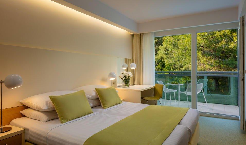 Sobe: klimatizirane, kupaonica/ wc, sušilo za kosu, telefon, sat TV, mini bar sef, balkon, neke na morsku stranu. Obiteljske sobe: jednako opremljene kao standard, dvije povezane sobe, dvije kupaonice, balkon, neke na morsku stranu.