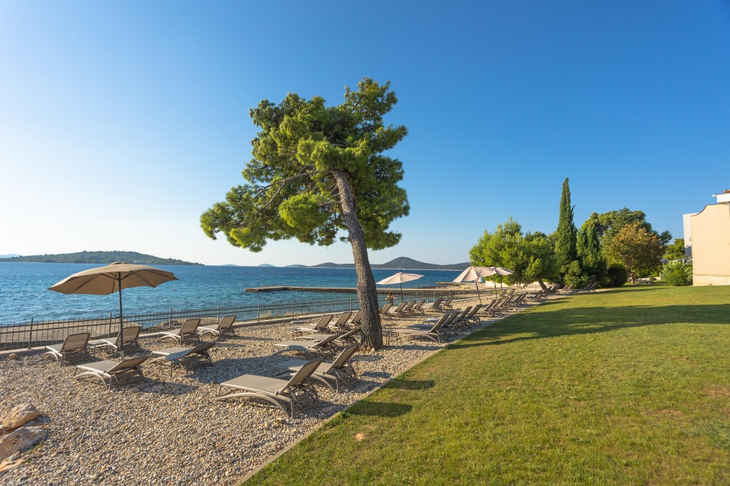 Villa Arausa nalazi se u borovoj šumi na poluotoku, samo nekoliko metara od mora i plaže. Villa je dio kompleksa koji je udaljen samo nekoliko minuta hoda od centra grada. Kristalno čisto more, s dobro očuvanom betonskom i šljunčanom plažom, zaštićeno je s nekoliko otočića od otvorenog mora. Samo stotinjak metara dalje nalazi se šljunčano-pješčana plaža pogodna za djecu i neplivače. Recepcija i restoran nalaze se u glavnoj zgradi "Hotel Punta". • 1 vanjski bazen • Dječja igraonica (Hotel Punta) • Bogati buffet restoran u hotelu Punta