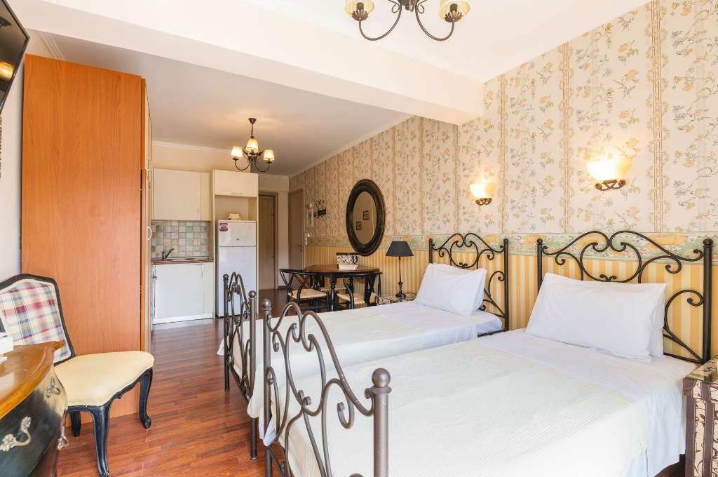Apartman: klima uređaj, kupaonica s wc-om, spavaća soba-dnevni boravak s kuhinjskom nišom i mini hladnjakom, SAT TV, bežični internet.