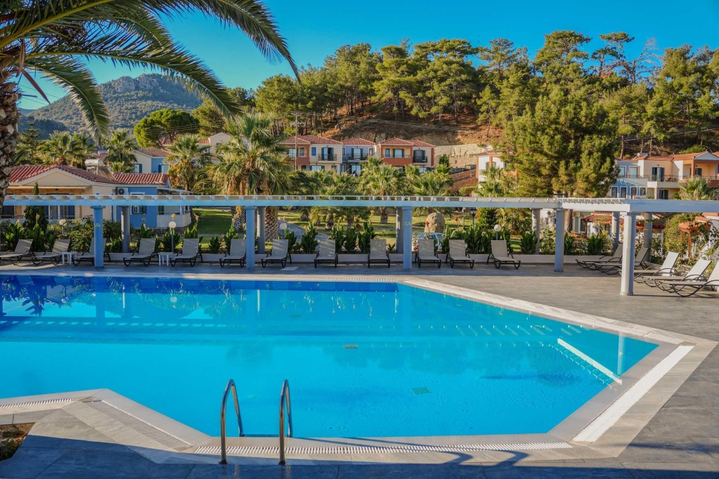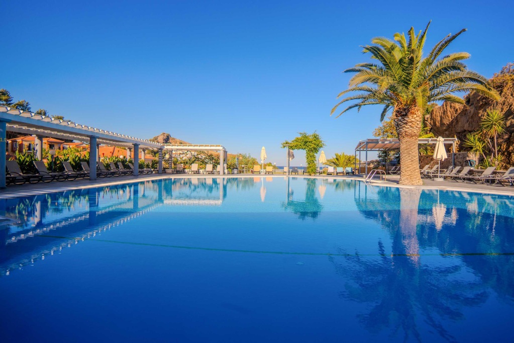 Hotelski sadržaji: glavni i popratni objekti, ukupno 130 soba, zadnji put djelomično renoviran 2022. godine; glavni buffet restoran, snack bar, dva bara; vanjski bazen, dječji bazen; bežični internet, besplatan parking (prema raspoloživosti).