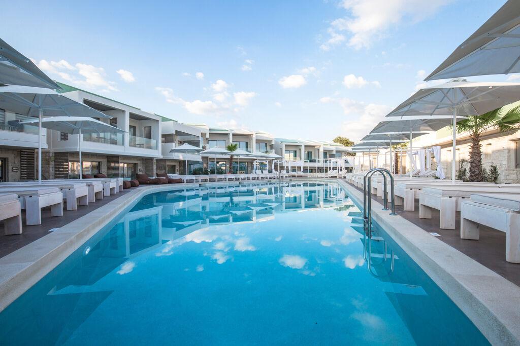 Hotelski sadržaji: moderan butik hotel (samo za osobe starije od 16 godina), izgrađen 2018., djelomično renoviran 2023., ukupno 57 soba (također sa zajedničkim bazenom, apartmani); restoran, snack bar; bazen; dizalo (glavna zgrada), bežični internet.