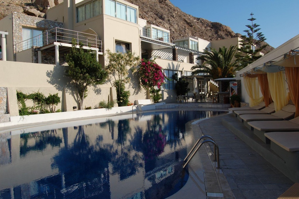 Lokacija: cca 450 m od šljunčano-pješčane plaže, 1 km od centra mjesta Kamari, 5 km od zračne luke.
