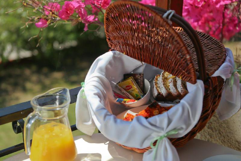 Usluga noćenja s doručkom: košara s doručkom se dostavlja na vrata: svu hranu vlasnici pripremaju kod kuće - svježe pečeni kruh, slana i slatka peciva, tradicionalnu pitu od sira, sok, kavu i čaj. Svaki dan u drugoj kombinaciji (čaj i kava (iz vrećice) su uvijek dostupni, ostali sastojci za doručak se mijenjaju dnevno). Gosti uživaju u doručku na svojim balkonima ili gdje god nađu svoj omiljeni kutak.