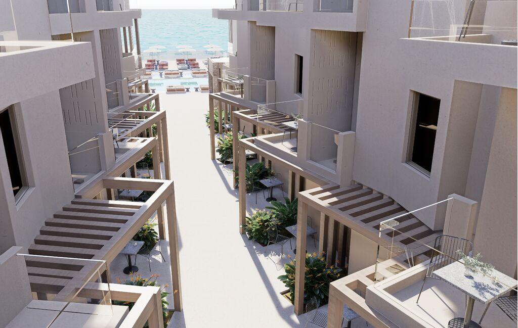 Lokacija: na maloj pješčano-šljunčanoj plaži (vrlo uski obalni pojas za vrijeme plime), u Sfakakiju na periferiji Rehtymna, otprilike 11 km od starog povijesnog centra grada, 77 km od zračne luke Chania.
