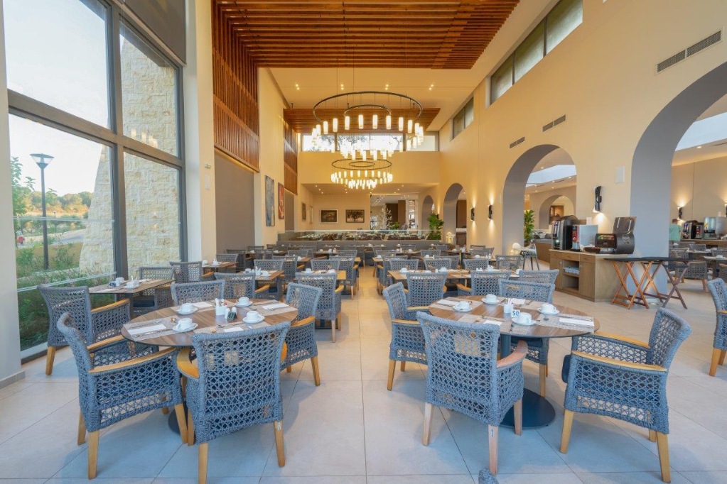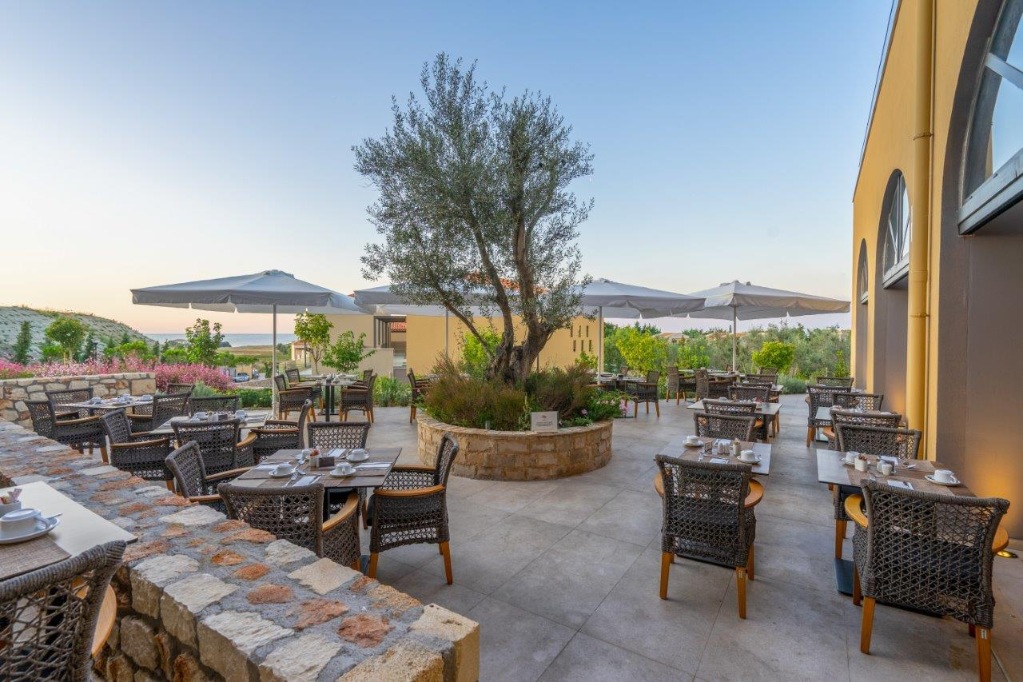 Hotelski sadržaji: hotelski kompleks koji se sastoji od dva dijela (Apollonion i Asterias), ukupno 127 soba (prilagođene i osobama s invaliditetom); restorani (glavni; grčki i talijanski "a-la-carte"), nekoliko barova; dva bazena, vodeni park za djecu i odrasle (određeno vrijeme) jacuzzi, sauna, parna kupelj, masaže, beauty centar; internet (plaćanje) i TV kutak, bežični internet; trgovine;