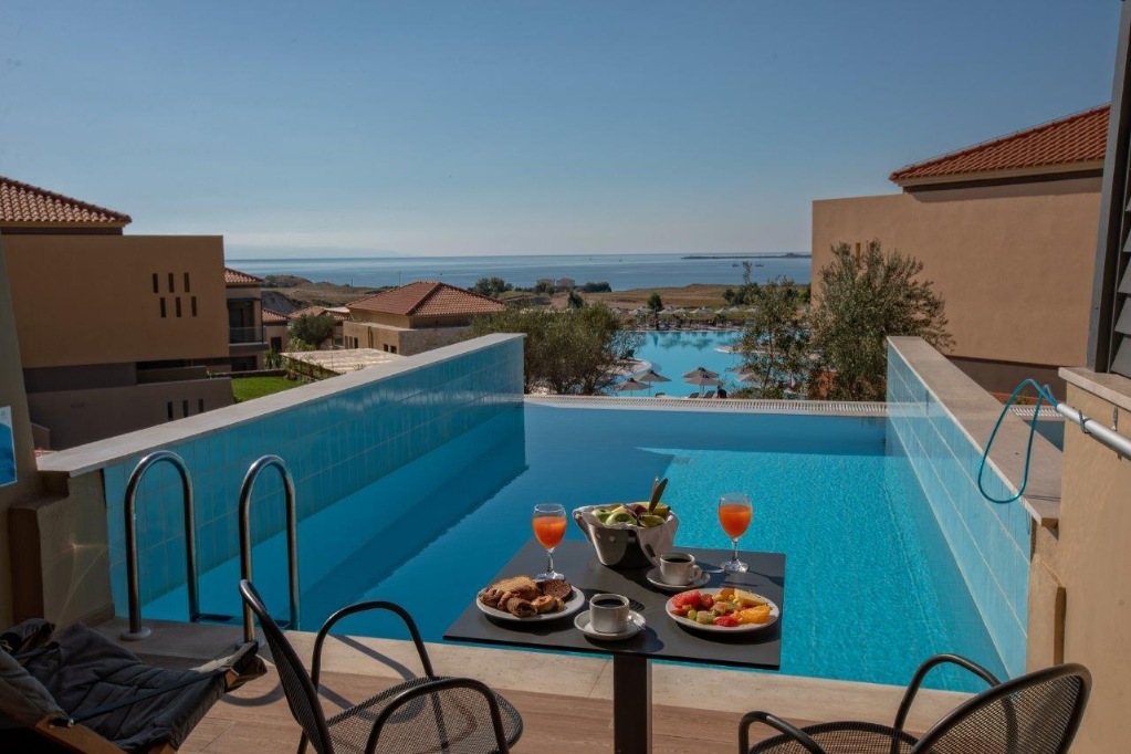 Junior suite (Asterias): ista oprema kao premium, veći i prostraniji, balkon, morska strana, neke s privatnim bazenom i bez morske strane (uz nadoplatu). Mogućnost dva dodatna kreveta.
