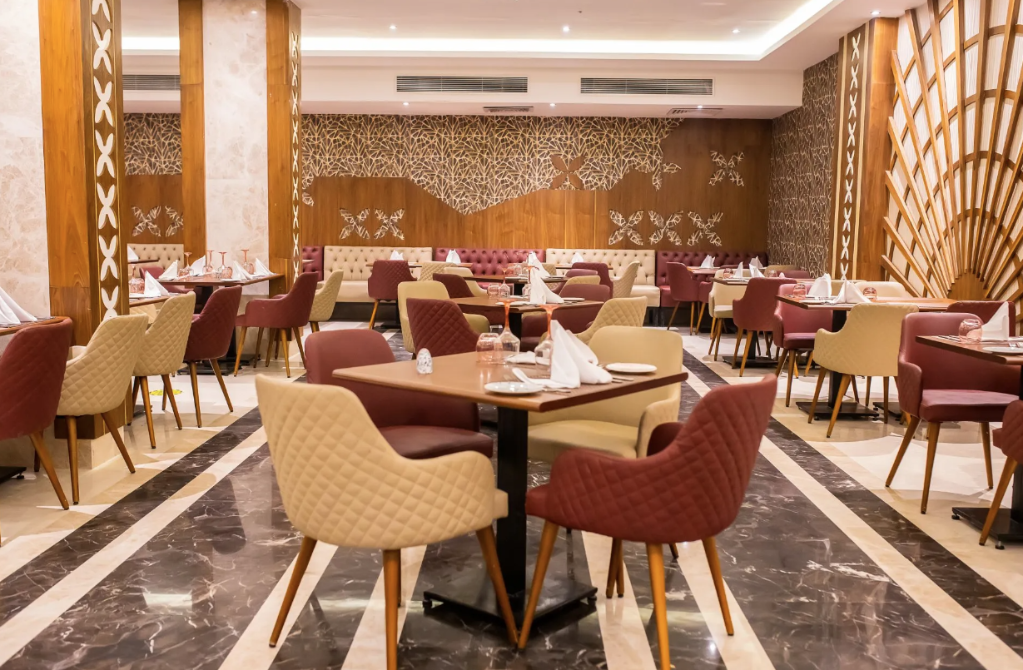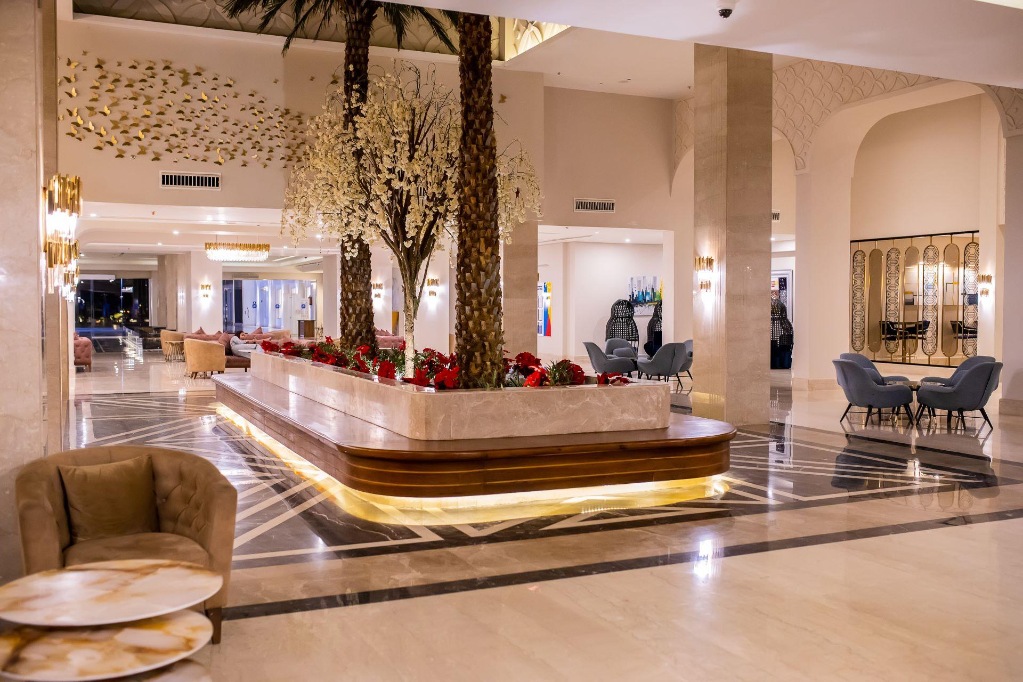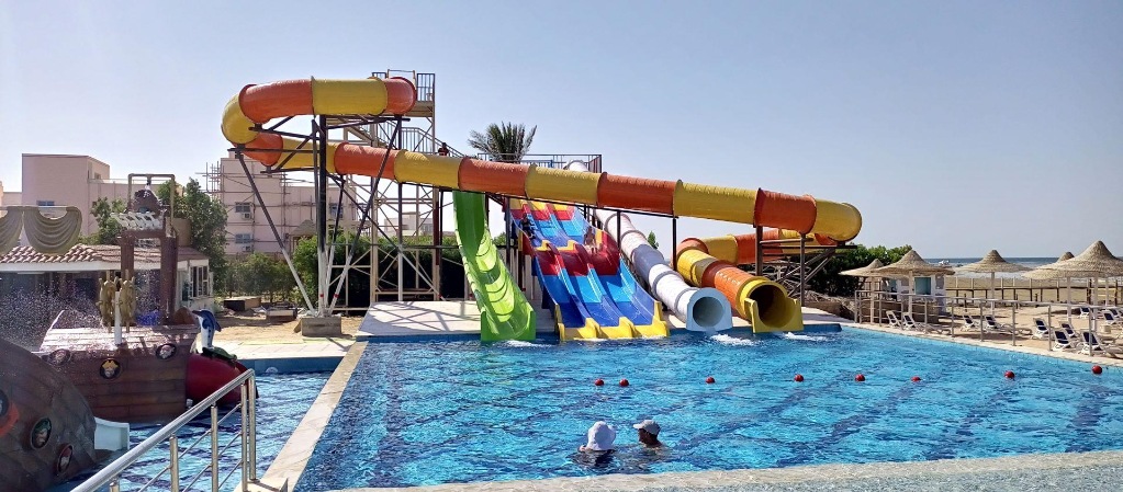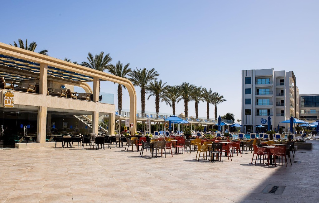Hotelski sadržaji: hotel na četiri kata, ukupno 450 soba (također bungalovi, apartmani); restorani (egipatski, talijanski, azijski i morski plodovi "a-la-carte"), nekoliko barova (uključujući i na plaži); pet vanjskih bazena (neki grijani zimi), dječji bazen, bazen s toboganima (određeno vrijeme, grijani zimi); trgovine, liftovi, TV kutak, bežični internet.