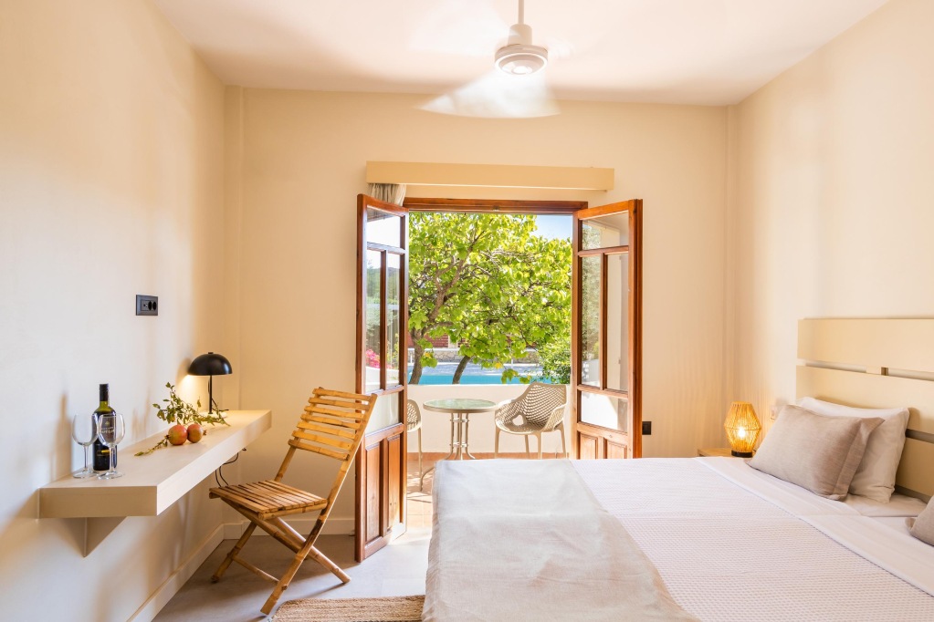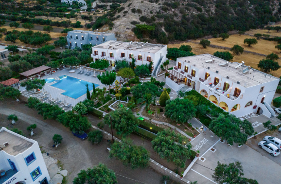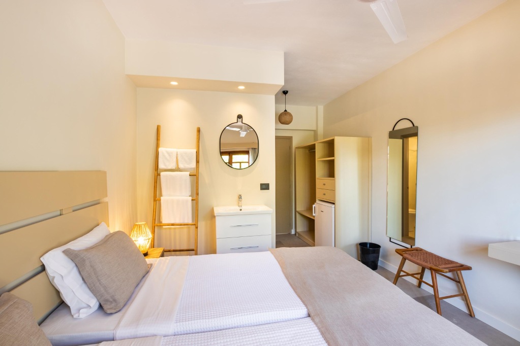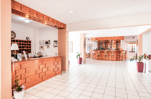 Hotelski sadržaji: jednokatni hotelski kompleks, ukupno 49 soba (uključujući obiteljske sobe), restoran (grčki "a-la-carte"), snack bar, bazen, bežični internet, sef, parking (ovisno o raspoloživosti).