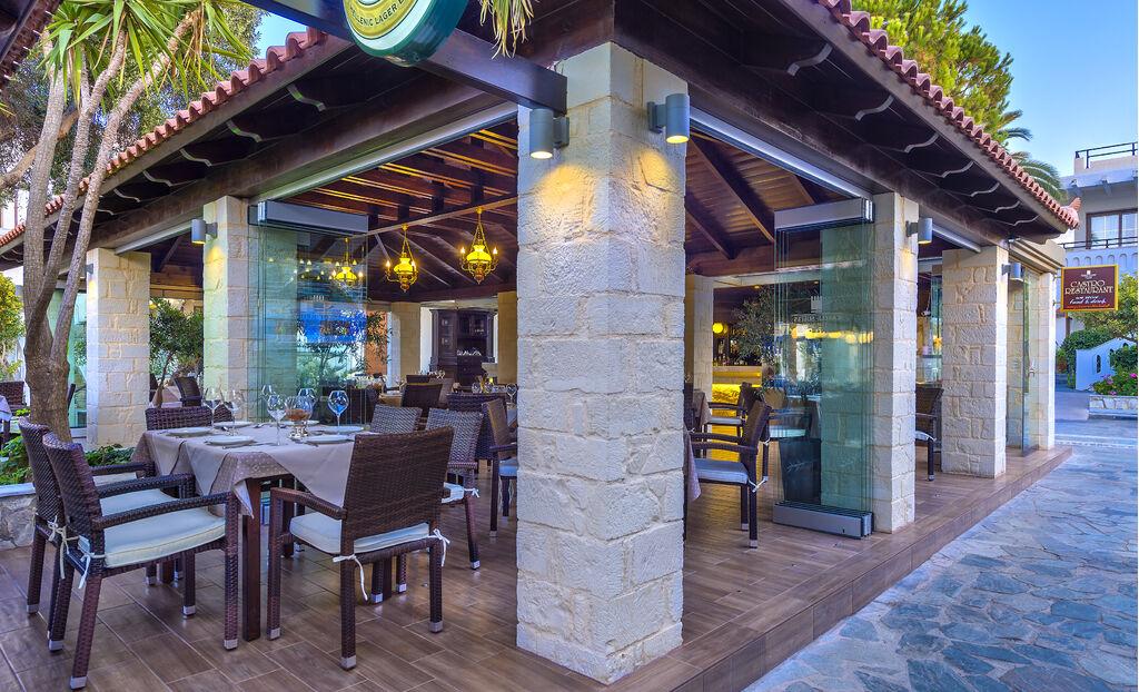 Hotelski sadržaji: dobro održavan hotelski kompleks izgrađen u stilu sela, koji se sastoji od tri kompleksa, svaki s vlastitim bazenom, ukupno 115 jedinica; mediteranski "a-la-carte" restoran, snack bar, slastičarnica; tri bazena, dva dječja bazena; lift, trgovina, bežični internet, parking (ovisno o raspoloživosti).