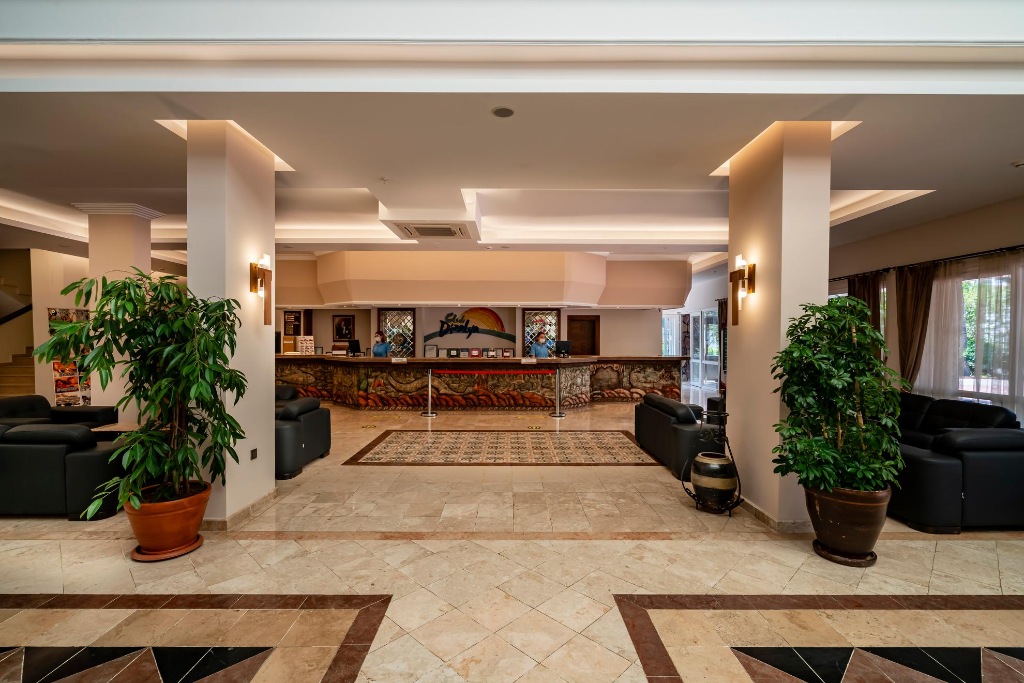 Hotelski sadržaji: hotel s dvije peterokatnice glavne zgrade i pratećih zgrada, ukupno 331 soba; restoran, snack bar, dva bara; glavni bazen, dječji bazen, vodeni park s dva tobogana (određeno vrijeme); konferencijska dvorana, trgovine, dizala, bežični internet.