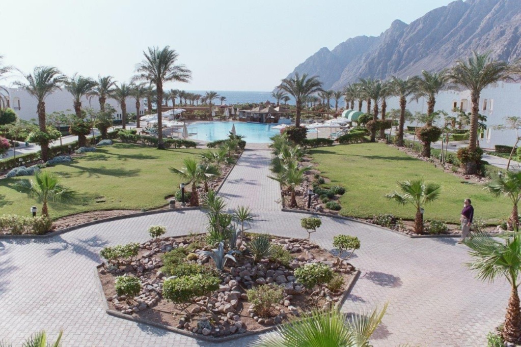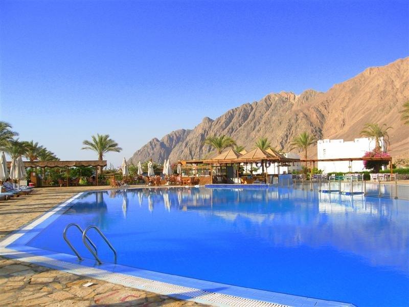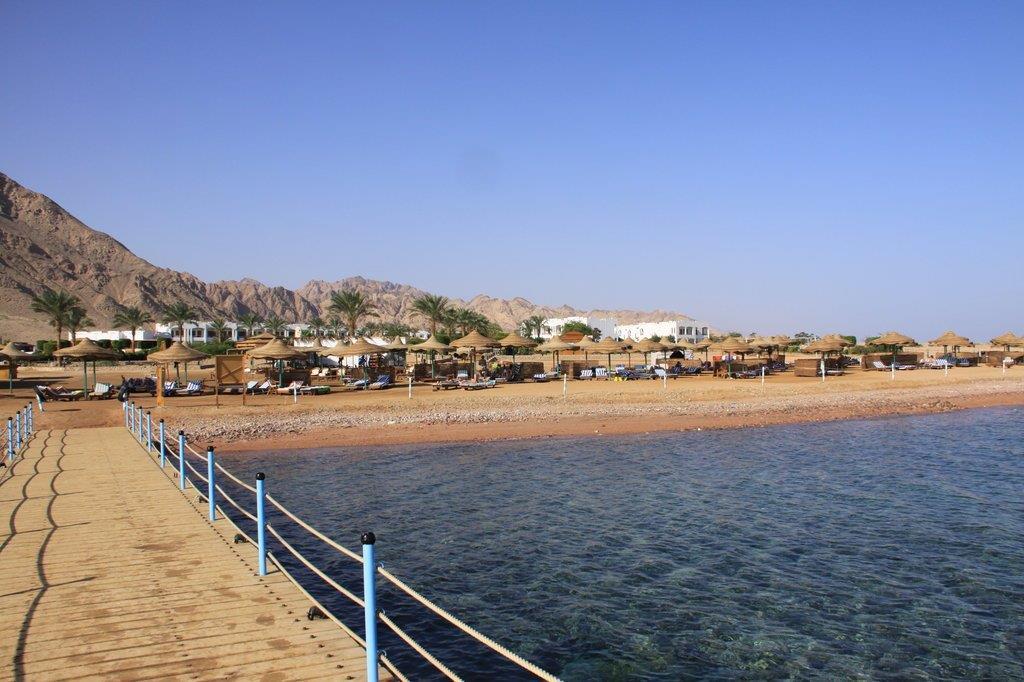 Uz pješčanu plažu s koraljnim grebenom (za ulaz u more preporučujemo obuću, u more vodi mol), 6 km od centra mjesta Dahaba (hotelski mini bus) i 85 km od zračne luke Sharm el Sheikh.