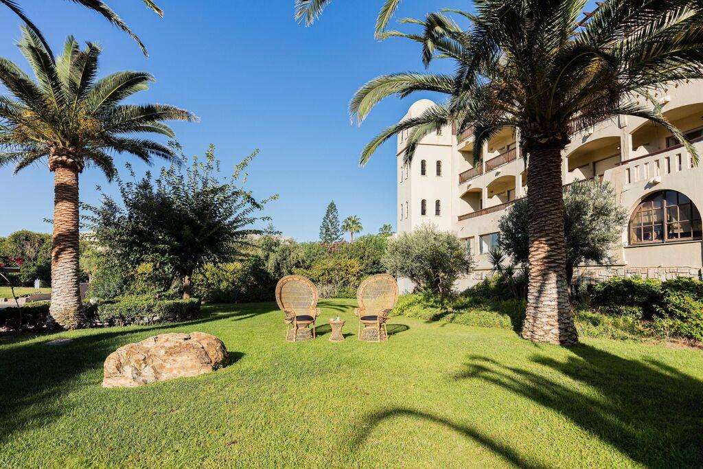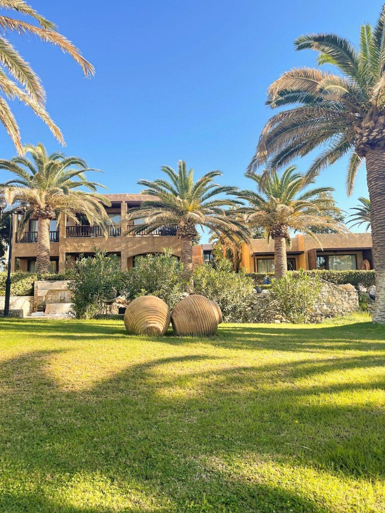 Hotelski sadržaji: dobro održavan hotelski kompleks koji se sastoji od glavne zgrade i aneksa bungalova, djelomično renoviran 2024. godine, ukupno 512 soba (uključujući apartmane, bungalove s privatnim bazenima); restorani (glavni; dva grčka, s plodovima mora i talijanski "a-la-carte"), snack bar, kafić, barovi (jedan i na plaži); tri bazena, dječji bazen, vodeni park (određeno radno vrijeme); trgovine, sef na recepciji, TV kutak, bežični internet; parking (ovisno o raspoloživosti).