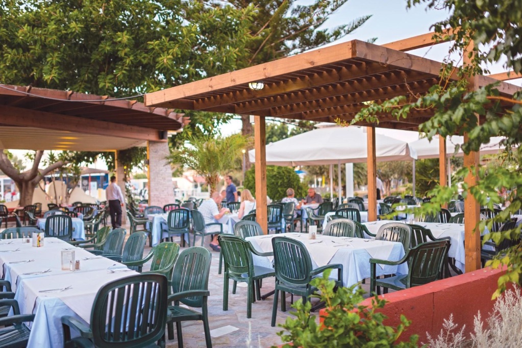 - buffet doručak, ručak i večera u glavnom restoranu (ručak i večera također u grčko-mediteranskom restoranu, 15.5.-15.10.); grickalice, sladoled u kuglicama;