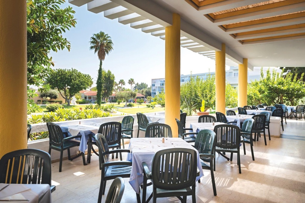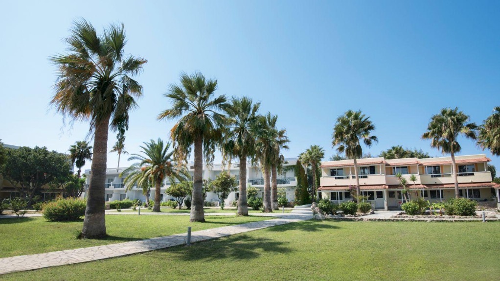 Hotelski sadržaji: hotelski kompleks koji se sastoji od glavne zgrade na četiri kata i pet bočnih zgrada tipa bungalova, ukupno 510 soba (uključujući obiteljske sobe, apartmane uz more, prilagođene osobama s invaliditetom); dva restorana (glavni; samoposlužni grčko-mediteranski), snack bar, barovi; bazen, dječji bazen; trgovine, internet (uz nadoplatu) i TV kutak, bežični internet; parking (ovisno o raspoloživosti).