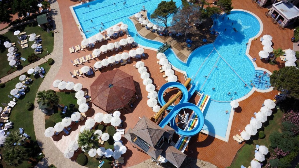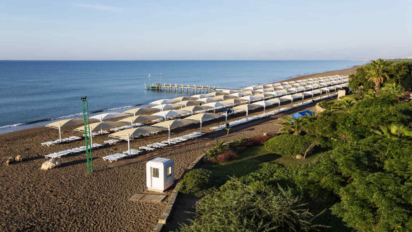 Živahno hotelsko naselje, uz vlastitu pješčano šljunčanu plažu s molom, na području Belek, otprilike 33 km od Antalye, 24 km od zračne luke Antalya, u blizini golf igrališta.