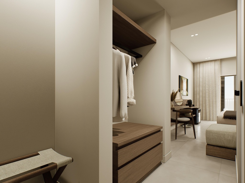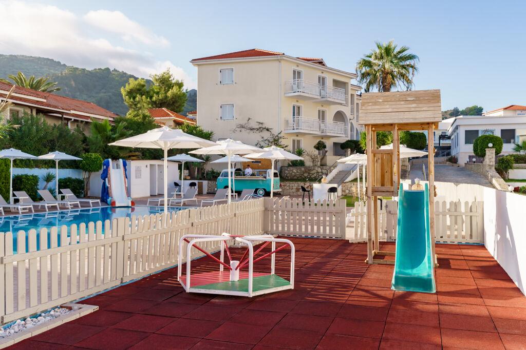 Hotelska ponuda: veći hotelski resort u modernom stilu s ukupno 120 soba (također apartmani, , s jacuzzijem, vlastiti bazen); restoran (glavni; grčki "a la carte"), bar na recepciji, bar uz bazen, snack bar; dva bazena, dječji bazen; internet kutak (uz nadoplatu), bežični internet, mogućnost parkiranja (ovisno o raspoloživosti).