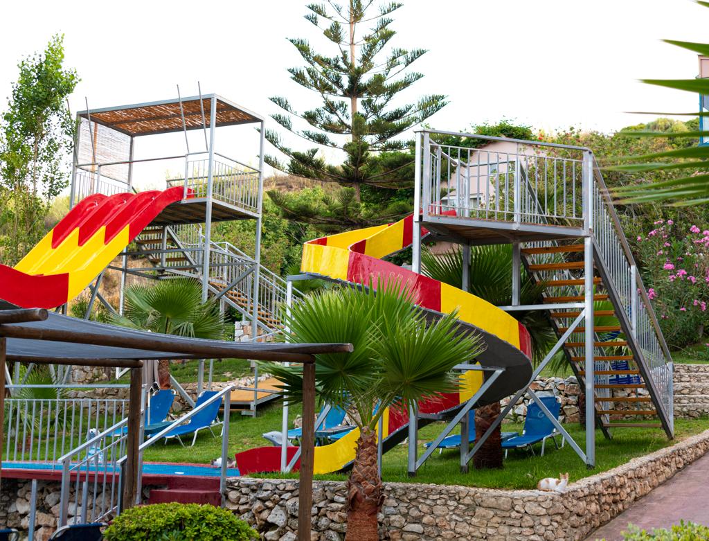 Hotelski sadržaji: terasasti hotelski kompleks, ukupno 314 soba (uključujući zajednički bazen i privatni bazen, mezonet); dva restorana (glavni; talijanski "a-la-carte"), snack bar, dva bara (jedan i na plaži); tri bazena, dječji bazen, vodeni park; TV kutak, bežični internet; parking (ovisno o raspoloživosti).