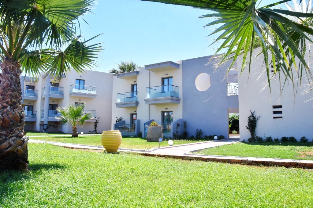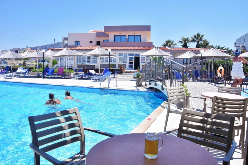 Hotelski sadržaji: mali hotelski kompleks koji se sastoji od glavne zgrade i šest jednokatnih zgrada tipa bungalova usred uređenog vrta i staza, djelomično renoviran 2019. godine, ukupno 117 soba, dva restorana (glavni; grčko-međunarodni "a-la-carte"), snack bar, bar; bazen s odvojenim dijelom za djecu; mini-market, internet (uz nadoplatu) i TV kutak, bežični internet; parking (ovisno o raspoloživosti).
