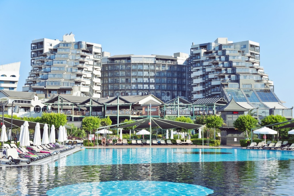Hotelski sadržaji: veliki i udobni prvoklasni hotel na osam katova, izgrađen u japanskom stilu, ukupno 441 soba (uključujući apartmane s jacuzzijem, prilagođene osobama s invaliditetom, restorani (glavni; sala za doručak; turski, talijanski, azijski, meksički "a-la-carte"), dva snack bara, barovi; tri bazena, dva dječja bazena, vodeni park s devet tobogana (na određeno vrijeme), jacuzzi, zatvoreni bazen s tobogan; trgovine, dizala, internetski kutak (uz nadoplatu), bežični internet, konferencijske sobe, parking (ovisno o raspoloživosti).