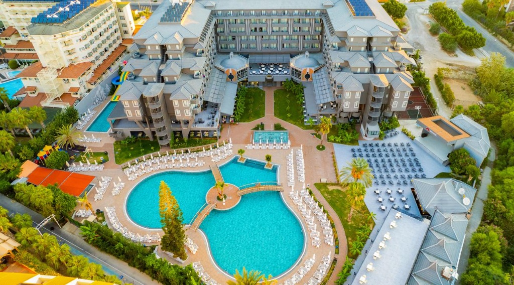 Hotelska ponuda: hotel na pet katova, renoviran 2024. godine, ukupno 326 soba (prilagođeno i osobama s invaliditetom); restorani (glavni; turski, morski, talijanski "a-la-carte"), snack barovi (također na plaži), slastičarna, nekoliko barova (također na plaži); tri bazena, dječji bazen s dva tobogana; dizala, bežični internet, parking (prema raspoloživosti).
