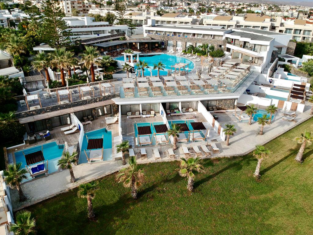 Hotelski sadržaji: moderan hotelski kompleks u minimalističkom stilu, ali sa svim udobnostima, dvije dvokatne glavne zgrade i nekoliko jednokatnih zgrada tipa bungalova, samo za osobe starije od 16 godina, djelomično renoviran 2019. godine, ukupno 298 soba (uključujući apartmane, sobe s privatnim bazenom i jacuzzijem); restorani (glavni; konoba, talijanski, mediteranski "a-la-carte"), barovi; tri bazena, unutarnji bazen; lift, trgovina, knjižnica, TV kutak, bežični internet; parkiralište dostupno (ovisno o raspoloživosti).