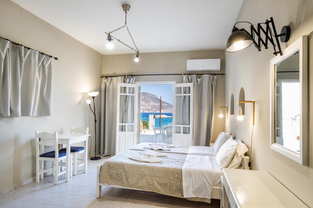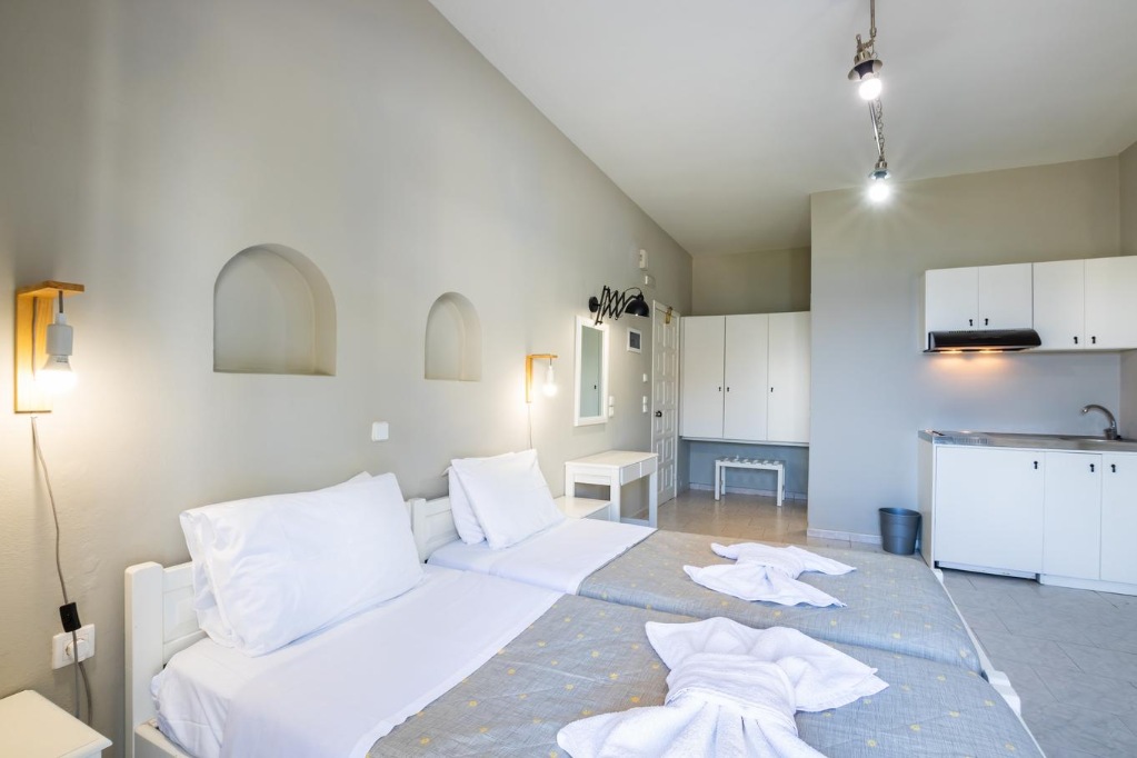 Lokacija: nasuprot pješčane i šljunčane plaže (između je obalna cesta), u Pigadiji, otprilike 13 km od zračne luke.