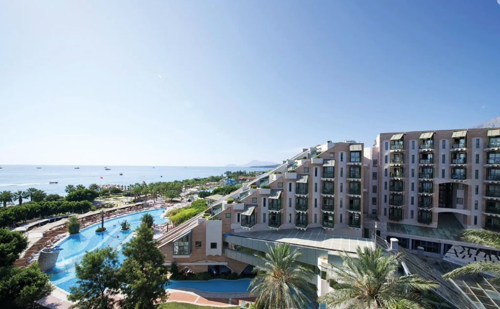 Hotelski sadržaji: usred uređenog vrta moderan hotelski kompleks koji se sastoji od glavne zgrade i nekoliko bočnih zgrada bungalovskog tipa, ukupno 685 soba (uključujući apartmane i sobe s jacuzzijem); restorani (glavni; buffet; kineski, talijanski, roštilj, turski, morski plodovi "a la carte" tijekom ljetne sezone), snack bar, slastičarna, barovi; četiri bazena s odvojenim dijelom za djecu, vodeni park sa šest tobogana (u određeno vrijeme), unutarnji bazen; trgovine, dizala, internet kutak (plaćanje), bežični internet, besplatan parking (prema raspoloživosti).