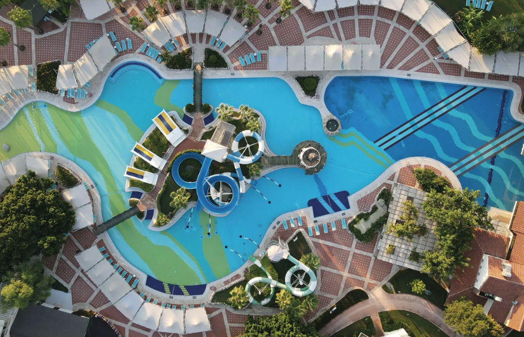 Djeca: poseban dio u kompleksu bazena, tobogani, igralište, mini (4-12 godina) i junior (12+ godina) klub.