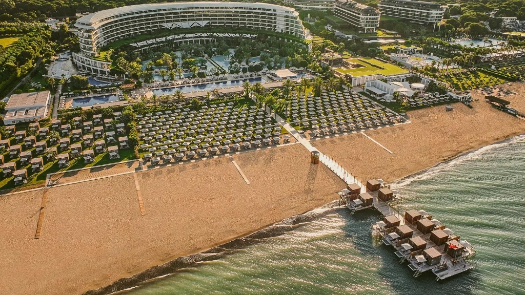 Hotelski sadržaji: hotelski kompleks koji se sastoji od glavne zgrade i nekoliko nižih zgrada, ukupno 531 soba (uključujući obiteljske sobe, vile, prilagođene osobama s invaliditetom); restorani (glavni; turski, mediteranski, morski plodovi, azijski, roštilj, talijanski à la carte), snack barovi, slastičarnica, nekoliko barova; šest bazena (četiri se griju i zimi), dječji bazen, unutarnji bazen, vodeni park (u određeno vrijeme); dizala, bežični internet; parking (ovisno o raspoloživosti).