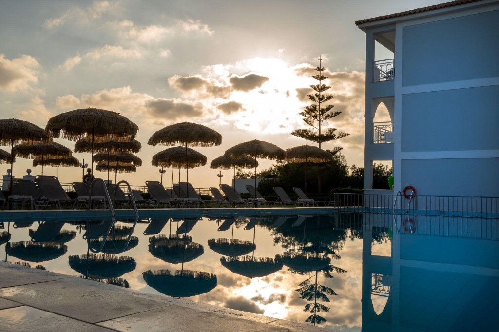 Lokacija: neposredno uz more (plaža je vrlo uska), u središtu mjesta Argassi, 3 km od grada Zakynthosa i 8 km od zračne luke, u blizini autobusnog kolodvora.