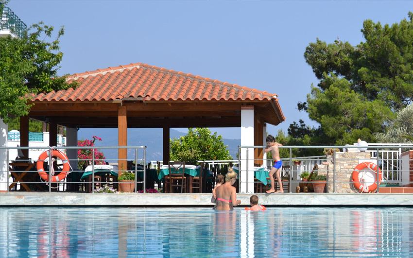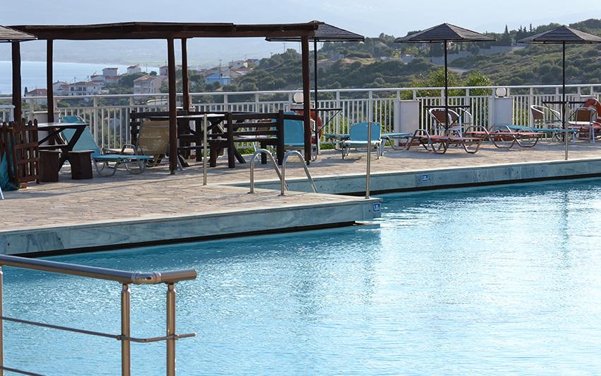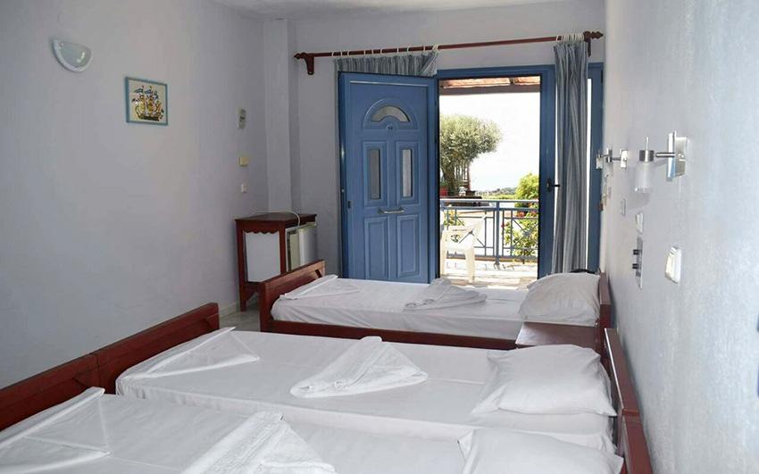 Lokacija: Hotelsko naselje izgrađeno u grčkom stilu, otprilike 800 m od pješčano šljunčane plaže (hotelski minibus predviđen je 3x dnevno, osim nedjeljom), 1.8 km od mjesta Pitagorion