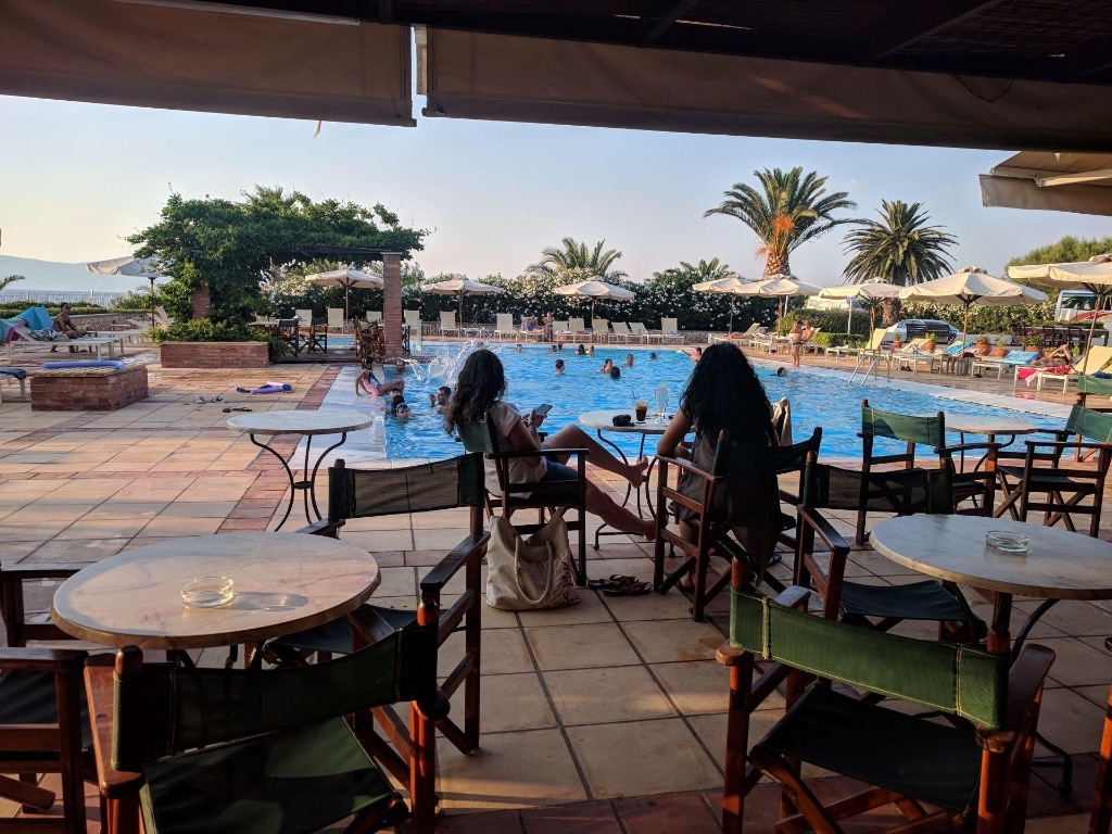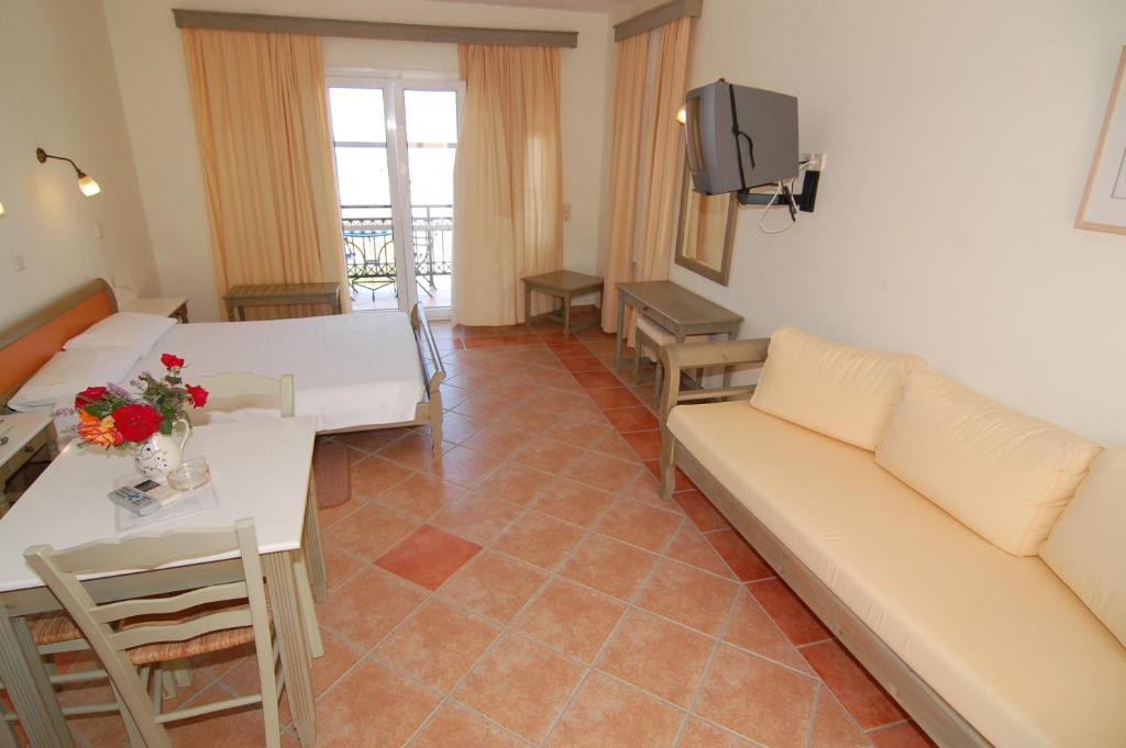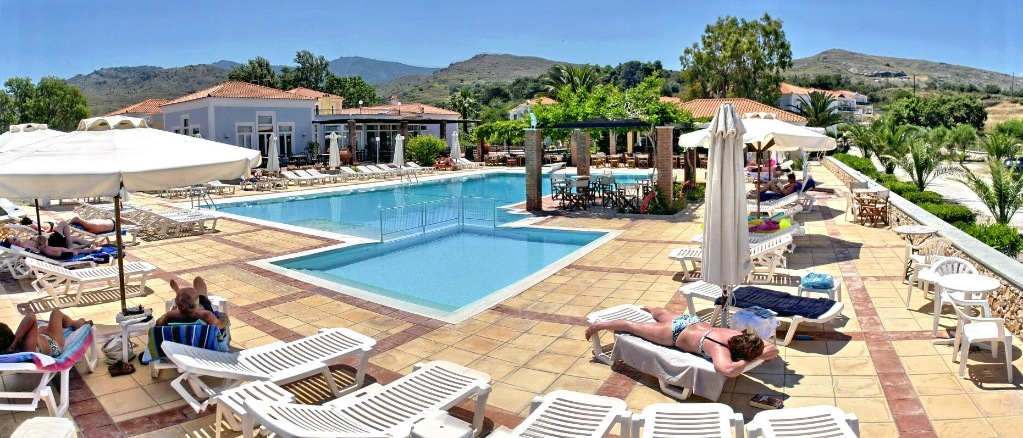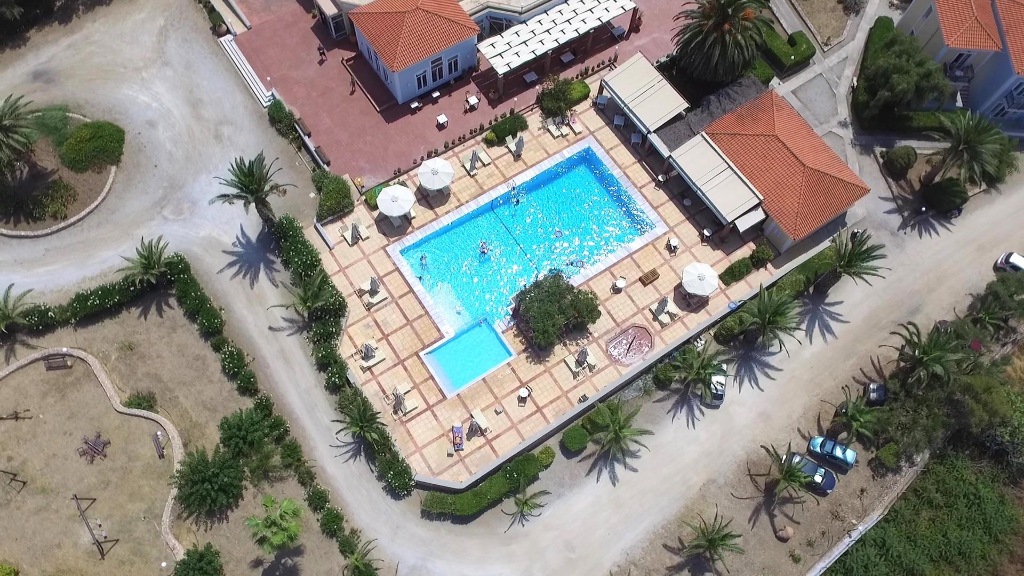 Hotelska ponuda: lijepo uređen mali hotelski kompleks, ukupno 76 studija i apartmana; restoran, bar uz bazen; glavni bazen, dječji bazen; bežični internet.