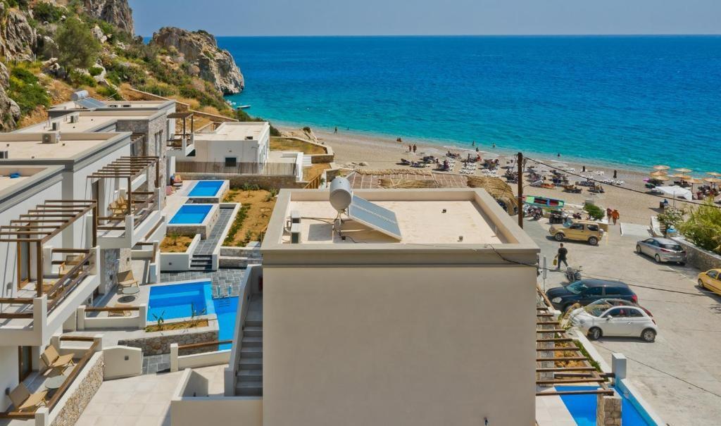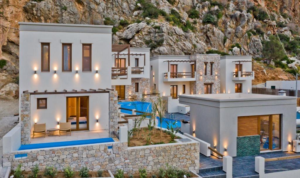 Lokacija: u resortu Kyra Panagia, 50m od pješčane plaže, 17 km od zračne luke, 15 km od mjesta Pigadia.