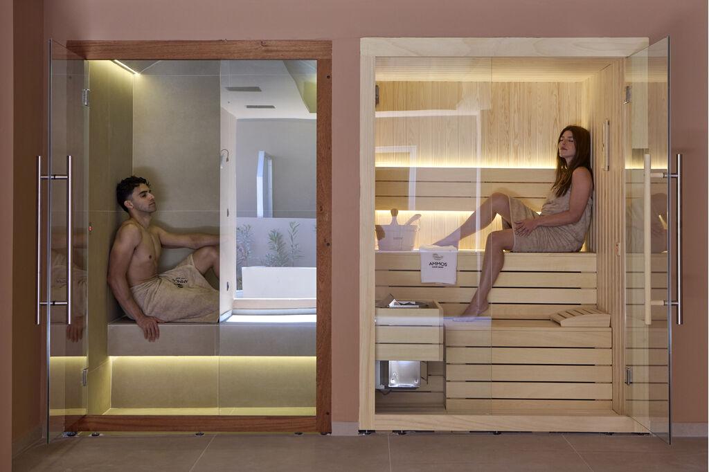 Wellness (u sestrinskom hotelu Mitsis Blue Domes uz dodatno plaćanje): masaže, unutarnji bazen. Zabava: animacija, disko. All inclusive: