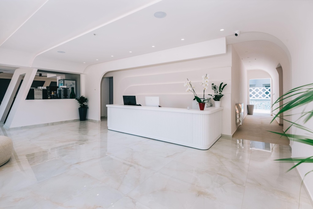 Hotelska ponuda: veći hotelski kompleks koji se sastoji od glavne i nekoliko popratnih zgrada, djelomično renoviran 2023. godine, ukupno 155 soba (također obiteljske, s privatnim bazenom, maisonette); restorani (glavni; mediteranski i riblji "a-la-carte"), nekoliko barova (jedan i na plaži); bazen, dječji bazen, vodeni park; TV kutak, trgovine, bežični internet; mogućnost parkinga (ovisno o raspoloživosti).