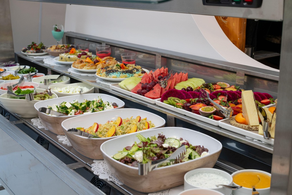 - buffet doručak, ručak i večera (povremeno tematski) u glavnom restoranu, kasni kontinentalni doručak; grickalice, čajanke, slatkiši i sladoled u kuglicama, kasne grickalice;