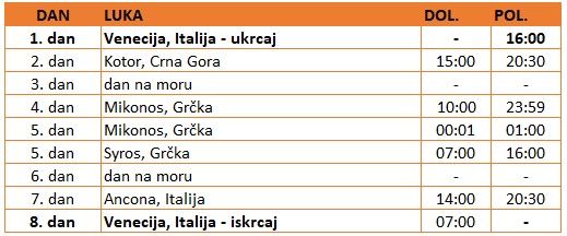 Raspored /itinerer krstarenjabpodložan je promjenama koje su u vezi s trenutnom situacijom u luci pristajanja.
